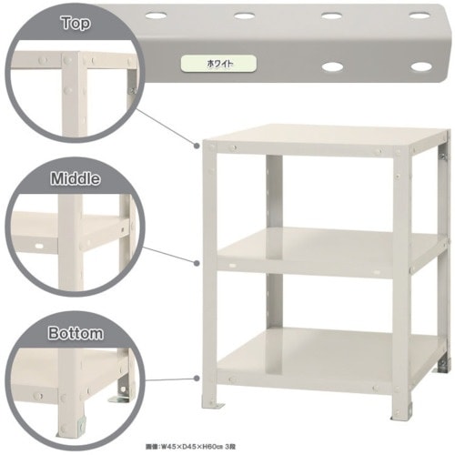間口(mm):450 | 奥行(mm):200 | 高さ(mm):600 | 有効間口(mm):390 | 色:ホワイト | 棚段数(段):3 | 均…