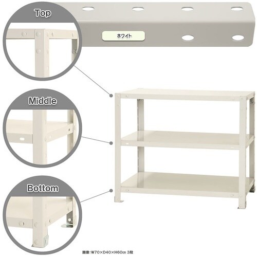 北島 北島 ボルト式棚 荷重40kg スマートラック 開放型 NSTR−147−3−W 3段 ホワイト 700×450×600 NSTR1473W 1台 A04R-6687