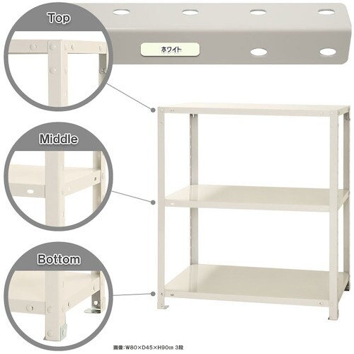 間口(mm):800 | 奥行(mm):300 | 高さ(mm):900 | 色:ホワイト | 棚段数(段):3 | 均等積載量(kg・段):40 |…