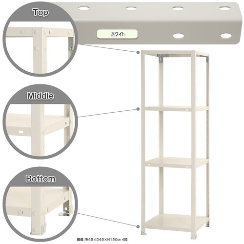 中段の変更が非常に簡単なスチールラックです。