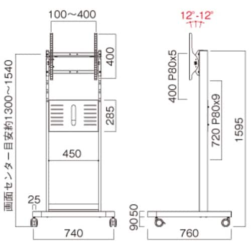 移動に便利な大型キャスターと収納・配線に便利な背面ホルダーを採用しています。コスト重視の簡易スタンドです。テレビ会議やデジタルサイネージに。 |