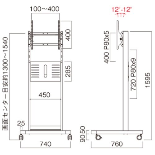 耐荷重(kg):40 | 本体寸法(mm)幅:740 | 本体寸法(mm)奥行:760 | 本体寸法(mm)高さ:1595 | 適合画面サイズ:ー60…