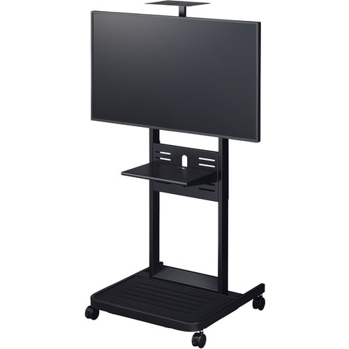 コスト重視の簡易スタンドです。移動に便利な大型キャスターと収納・配線に便利な背面ホルダーを採用しています。テレビ会議やデジタルサイネージに。