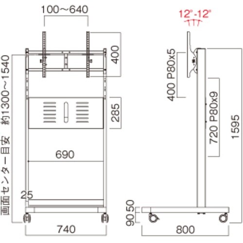 耐荷重(kg):65 | 本体寸法(mm)幅:740 | 本体寸法(mm)奥行:800 | 本体寸法(mm)高さ:1595 | 適合画面サイズ:ー80…