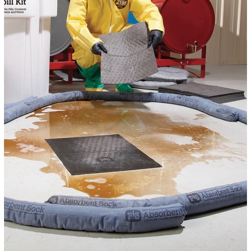 中身はきめ細かいバーキュライト粒子。漏洩する液体をすばやく吸収します。機械周辺に設置すれば、作業現場をクリーンに、安全に維持することができます。オイル・水・溶剤用。 |