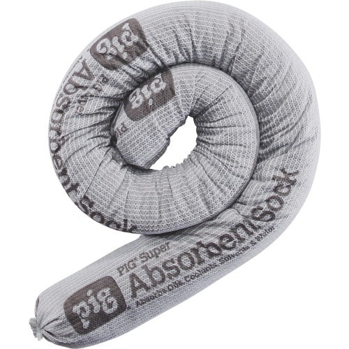 スーパーピグソックスは、他のソックスに比べ、多量の液体漏れに対応します。吸水量:約1.9L/本程吸収するので、交換頻度が少なくなります。油、冷却水、溶剤、水などを吸収します。再利用可能。 |