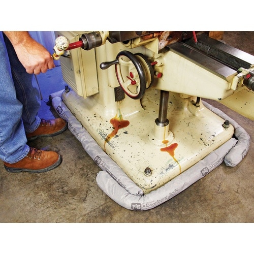 ソックスの内部に吸収素材が入っています。機械周辺に設置するだけの簡易タイプです。オイル・水・溶剤用。 |