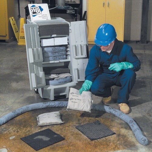 中身は高い吸収性能を持つセルロースです。油、冷却水、溶剤、水などを吸収します。ポリプロピレンせいカバーは丈夫です。オイル・水・溶剤用。