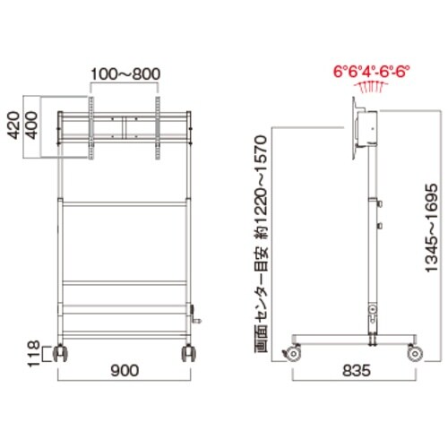 耐荷重(kg):65 | 本体寸法(mm)幅:900 | 本体寸法(mm)奥行:835 | 本体寸法(mm)高さ:1345ー1695 | 適合画面サイ…