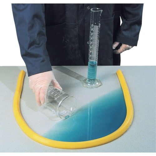 液体を吸収せずにせき止めます。作業台の上など、少量の漏洩を限定するのに最適です。作業台に防壁をして設置すれば、ボルト、ベアリングなど小さな部品の落下を防ぎます。柔軟で不規則なカーブにも対応します。 |