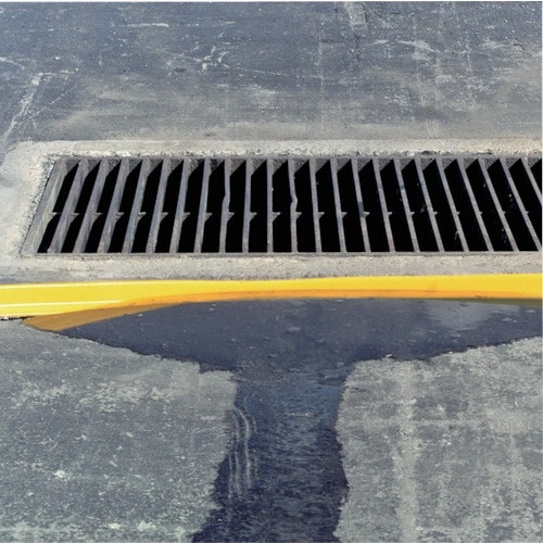 粘着力にすぐれた底部は、凹凸のあるこんくりーとやアスファルトなど、ほとんどの表面に密着します。高さは約5.7cm・液体漏れを吸収せずにせき止めます。 |