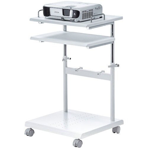 天板と中棚の高さ変更が可能です。天板と中棚の間隔は固定です。プロジェクターは天板にも中棚にも設置可能です。 |