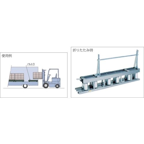小さな牽引力で大きな積載荷重、荷役のスピードアップ・省力化に最適です。幌式トラックに。狭い倉庫内の移動台車として。不要時には折りたたみ可能です。 |