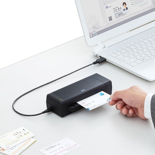 一度のスキャンで両面の読み取りが可能です。名刺を読み込んで、管理や検索が可能で高速読み込みと文字認識で数百枚の名刺でもストレスなく作業可能です。 |