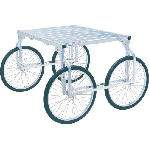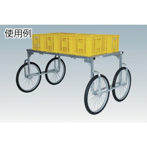 高さ、タイヤ幅を調整できますので、圃場に合わせて作業できます。最大で20kgコンテナが7個載ります。路地野菜などの収穫に使用します。 |