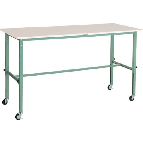 TRUSCO 軽荷重作業台高さ調節式(80kg)AEM型 1800X600XH718ー1018 φ75キャスター付 グリーン色 RAEM1860C75 1台