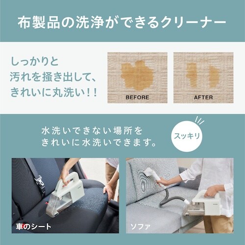 とっさの汚れを手軽にサッと落とせる、布製品洗浄クリーナーのハンディタイプのリンサークリーナーです。水を吹き付けて汚れを浮かせて強力に吸引し洗浄します。布製品の清掃に。 |