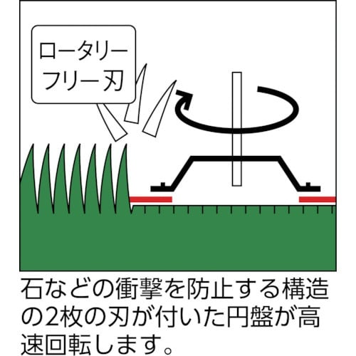 エンジン芝刈機です。前輪に小型キャスターを採用し、小回りが利く構造です。芝刈り用。 |