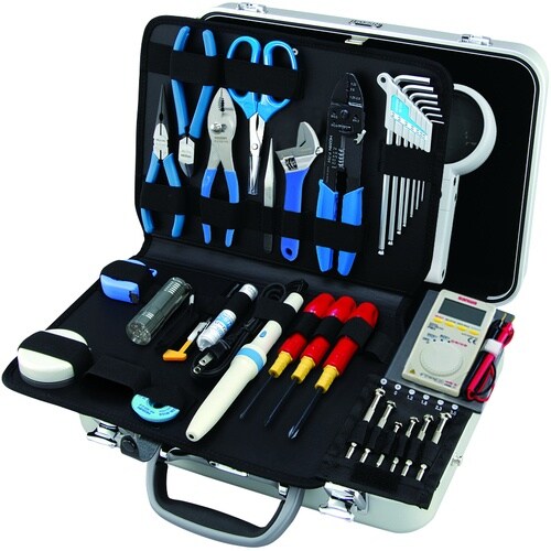 100V仕様です。ダイヤルロック付アルミケースを使用しています。フィールドエンジニア用工具セット。 |