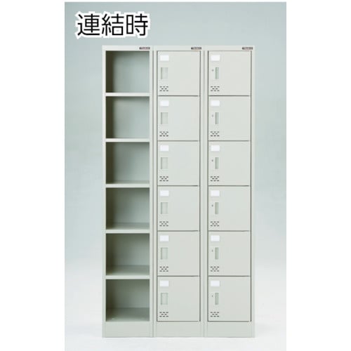 連結可能な1列6段仕様のシューズロッカーです。連結はドライバー1本(+NO.2)で簡単に連結できます。アジャスター付なのでレベル調整も可能です。