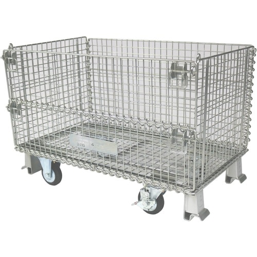 メッシュ構造で軽量ながら、強度に優れています。組み立て、折りたたみが簡単で、折りたたんでおけば、保管スペースを取りません。フォークリフト作業が容易で、作業効率が上がります。 |