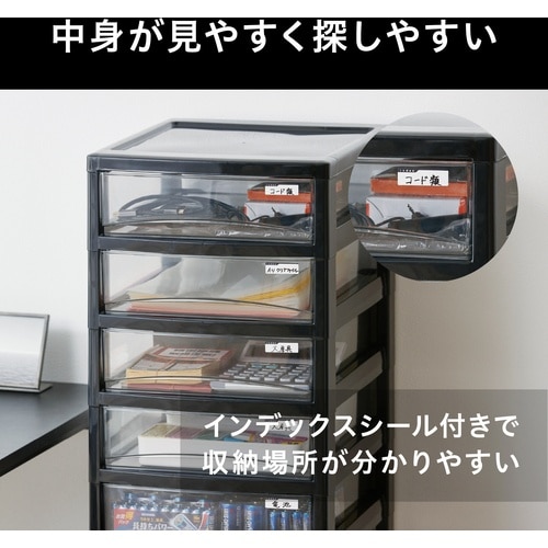 引出しの材質にスチロールを採用した、中身が確認しやすいクリアタイプのチェストです。引出しは浅型タイプで、Yシャツや小物等を収納するのに適したサイズです。引出しが飛び出しにくい、簡易ロック構造です。 |
