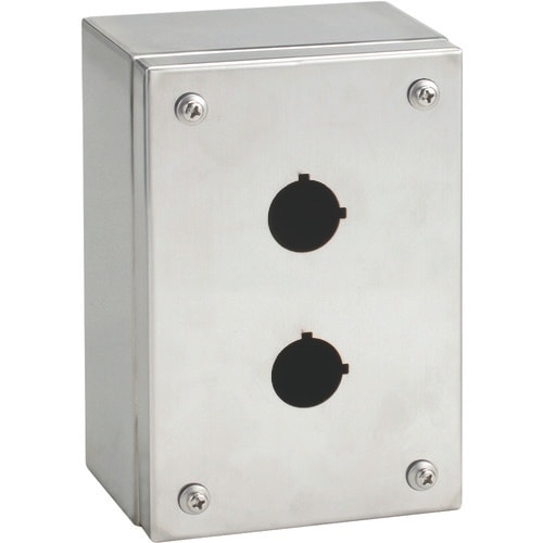 高IPの押しボタン取付用ステンレススイッチボックスです。材質にステンレス(SUS304)を使用しています。開口部周縁は簡易水切構造で、防塵・防水効果を高めた構造です。カバー止めねじは脱落防止構造です。 |