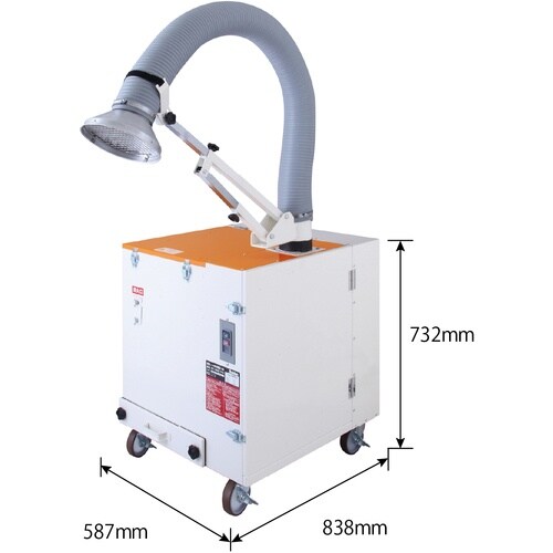 360°旋回、伸縮するダクトアームにより、吸込み口を自由自在に設置可能です。工具を使わず、フィルターのメンテナンスや交換が可能です。溶接作業現場に。 |