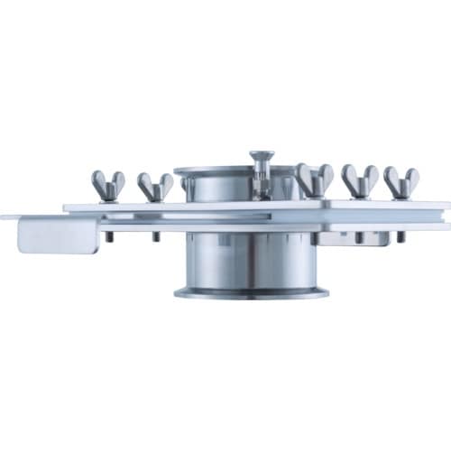 粉体、粒体の充填工程、原材料の投入工程などで活躍します。両側ともへルール接続なので、着脱が簡単です。PTFEパッキンにより、スムーズにスライドできます。バルブの誤開閉を防止するロック機能付きです。 |