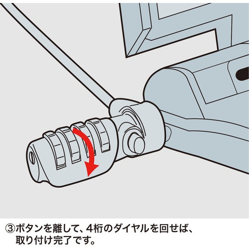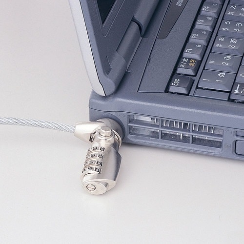 設定が簡単な4桁ダイヤル錠とワイヤーの一体型タイプです。ノートパソコンのセキュリティスロットに簡単取り付けられ、盗難からノートパソコンを守ります。 |