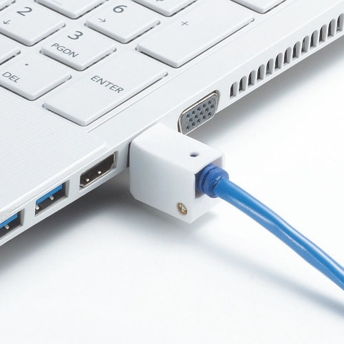 LANケーブルの抜け止め防止とデータ・機器本体の盗難防止を同時に実現します。付属の特殊レンチ以外では、取外しはできません。 |