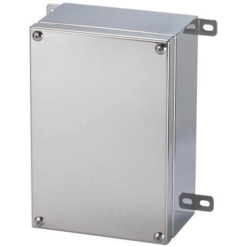 外部取付け足付きのビス止めボックス。耐食耐塩耐候性に優れたステンレス製です。