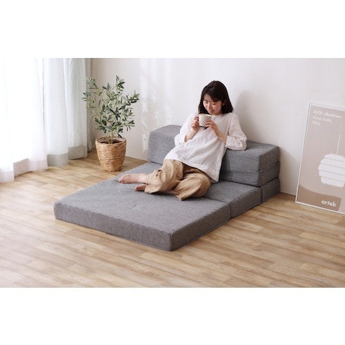 マットレス、枕付きマットレス、カウチ、ソファとして使える4WAYタイプのマットレスです。折りたたみ方を変えるだけで、用途に合わせて使い方が自由に選べます。 |