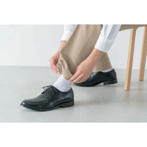 お届き次第、直ぐにはける[裾お直し不要]パンツです。はいたままでも裾を内側に折り込むだけで、簡単裾上げ(5cm間隔)の特許仕様。