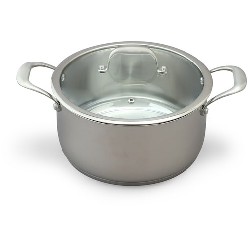 丈夫で保温力が高く、熱効率がよいステンレス製の鍋です。ステンレスとアルミニウムの3層底構造で保温性に優れています。調理中、熱くなりにくい中空ハンドルです。鍋の内側には便利な計量目盛りが付いています。 |