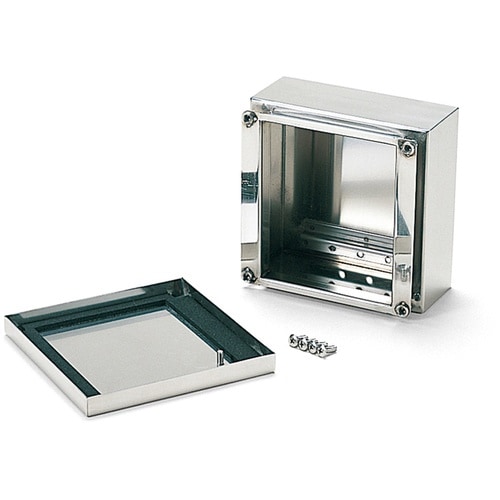 外部取付け足付きのラッチ式開閉ボックスです。・耐食・耐塩・耐候性に優れたステンレス製です。 |