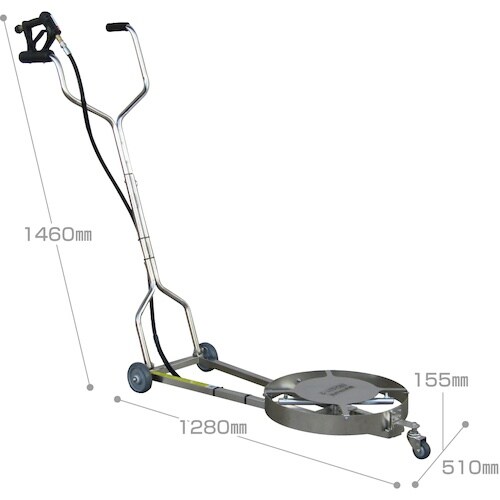 上部に向けて配置された回転ノズルで車両底部分を強力に洗浄します。泥汚れ等が付きやすく、洗浄が難しい車両底部ですが、カーシャーシクリーナーなら効率よく洗浄が可能です。 |