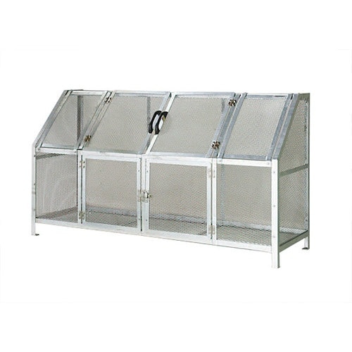 においのこもらないメッシュタイプです。集積物がひと目で分かります。大開口前面観音開きタイプです。組立仕様です。町内会、自治会の集積保管庫。工場などの集積保管庫。 |