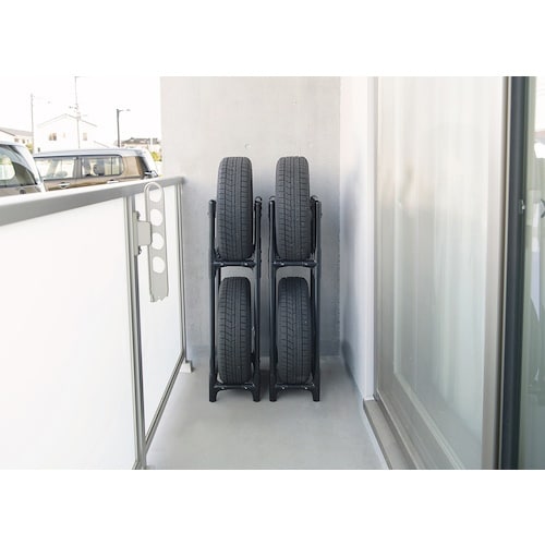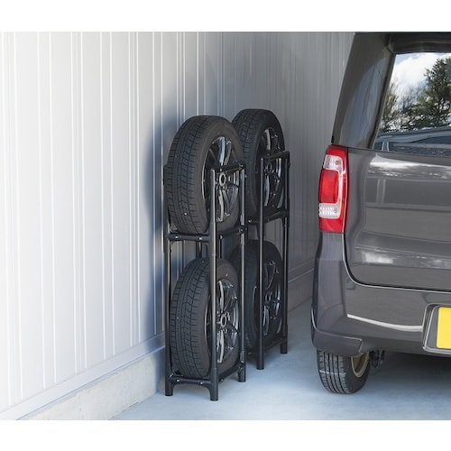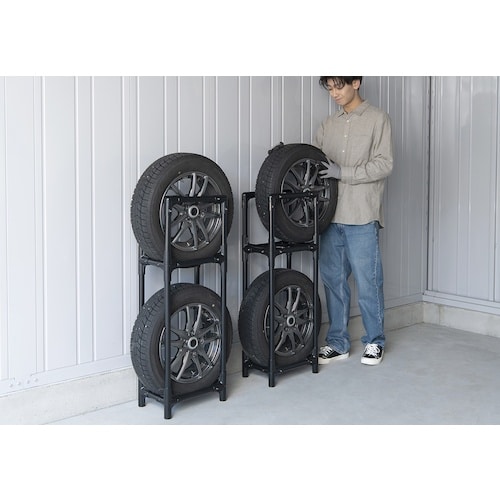ネジ・工具不要のはめ込み式で組み立て簡単なタイヤラックです。軽自動車や軽トラック用のタイヤを収納できます。スリムタイプのため、車庫やベランダスペースを活用してタイヤを収納できます。お客様組み立てです。 |