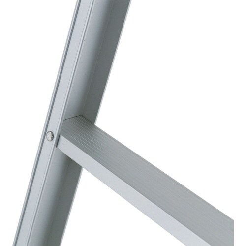 リベットジョイント構造です。超軽量コンパクトサイズのはしごです。オールアルマイト仕上げです。高所への昇降用。 |