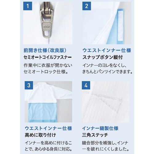 肌への接触面積を減らす、点タッチ設計の素材シリーズのウェアです。異物混入を防ぐ仕様で、工場内の安全・安心をサポートするHACCP支援対応商品です。