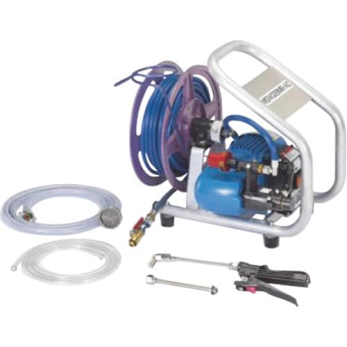 全閉外扇形モーター採用で水周りにも使用可能。空調機器や洗濯機の洗浄メンテナンス用に開発。モーター駆動なので操作が簡単で、運転音も静かで室内での作業に適しています。 |