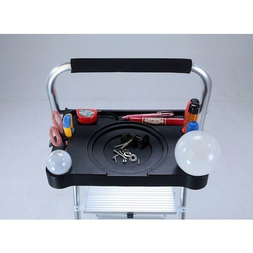 トレー付きで作業に大活躍の脚立。使わない時はサッと折りたたんでコンパクト収納。