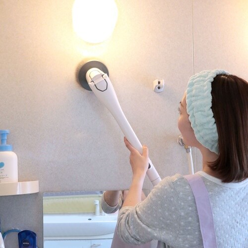 最長165.5cmの長さに調整可能な電動クリーナー。立ったままブラシを回転させてバスタブや床を掃除可能。 |