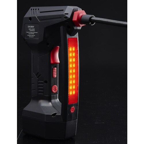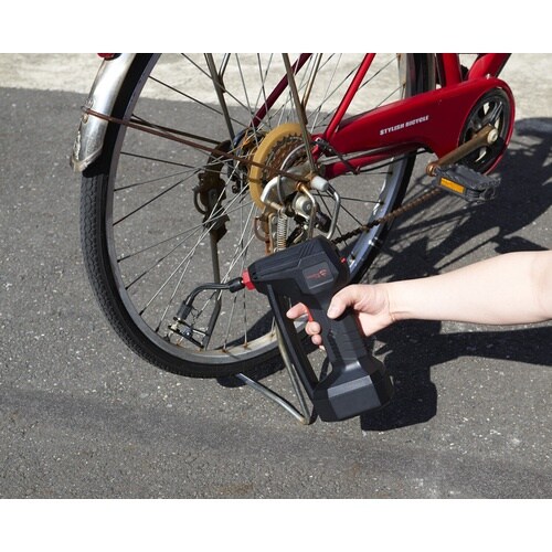 電動で空気圧を調整。ボールや浮き輪だけでなく、車のタイヤにもお使いいただけます。バッテリー式でコードレスなので屋外でも使いやすい製品です。 |