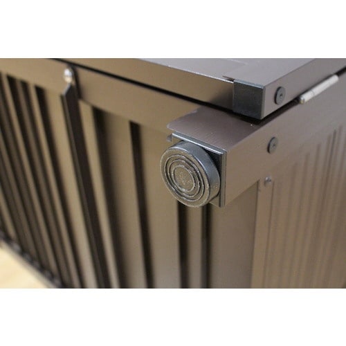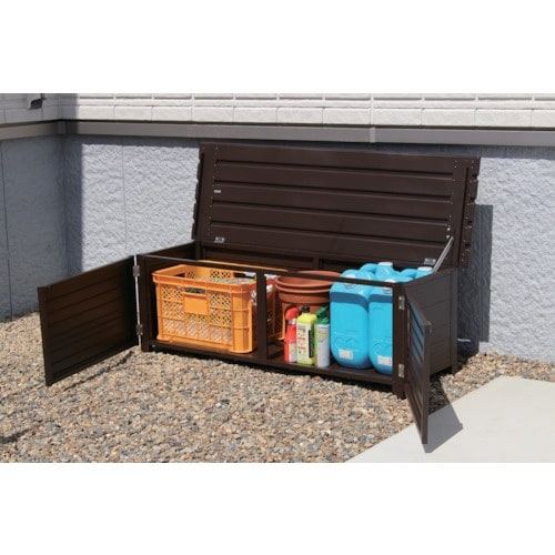 アルミ製の、上に座る事が出来るベンチストッカーです。上蓋からも前扉からも収納出来るので、重いものは前から、大きなものは上から収納が出来、非常に便利です。アルミ製なのでサビにも強いです。 |