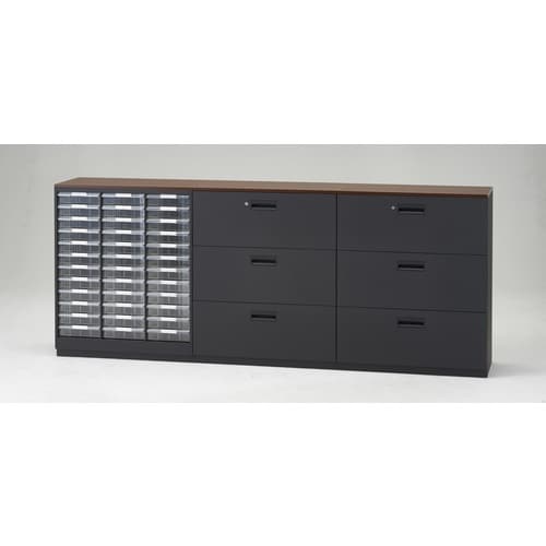 素手で触れても汚れにくい加工を施した、高級感あふれる商品です。ヒンジが扉表面に出っ張らないので、オフィスの景観を損ないません。16.6mm感覚で収納物に合わせて最適な高さ一が設定できます。 |