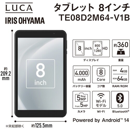 アイリスオーヤマ IRIS 107928 タブレット 8インチ ブラック TE08D2M64V1B 1台 A04T-4783