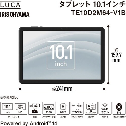アイリスオーヤマ IRIS 107929 タブレット 10.1インチ ブラック TE10D2M64V1B 1台 A04T-4787