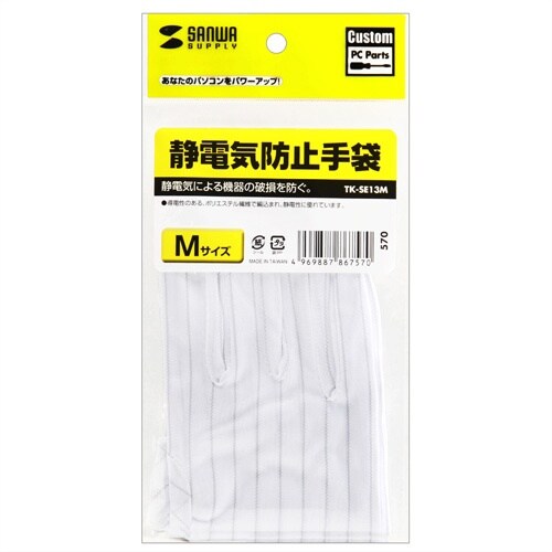 静電気から電子機器を守る静電防止手袋です。導電性のある、ポリエステル繊維で編み込まれ、静電性に優れています。 |